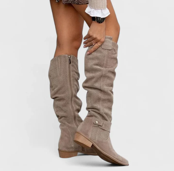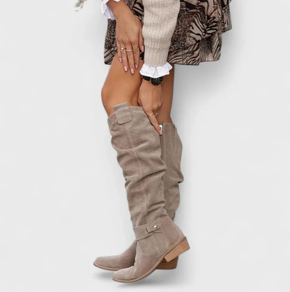 L’eleganza che non chiede attenzione, la ottiene. Artemide non è uno stivale: è un simbolo di potere. Realizzato in camoscio vellutato, accompagna la gamba con morbidezza e carattere, esaltando la femminilità con una linea fluida e irresistibile.